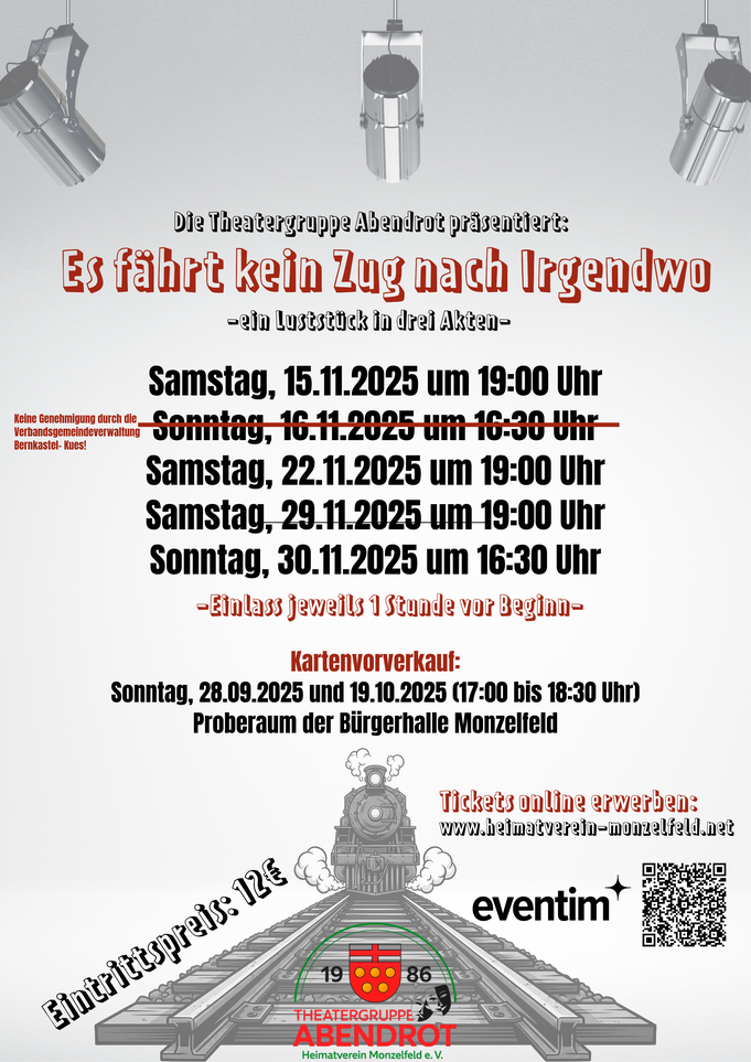 Der Heimatverein Monzelfeld streitet sich derzeit mit der Verbandsgemeindeverwaltung Bernkastel- Kues wegen der Verweigerung einer Gestattung für die geplante Theateraufführung am Volkstrauertag. Dazu sei erwähnt, dass der Verein seit fast 40 Jahren Theater auf die Bühne bringt, öfter auch an dem besagten Feiertag, letztmalig im vergangenen Jahr. Bei der diesjährigen Beantragung der Gestattung für insgesamt fünf Aufführungen wurde die Genehmigung durch die Behörde versagt. Hintergrund dieser Entscheidung das sogenannte rheinlandpfälzische Feiertagsgesetz, dass einige gesetzliche, kirchliche oder die sogenannten stillen Feiertage regelt. Zu diesen Feiertagen zählt auch der Volkstrauertag. Die Vertreter des Vereinsvorstands stören sich daran, dass laut Gesetz sportliche Veranstaltungen an diesen Tagen ab 13.00 Uhr erlaubt sind, Theateraufführungen und andere Veranstaltungen jedoch nicht. Die Behördenvertreter haben sogar die Inhaltsbeschreibung des Theaterstücks analysiert und sind zu dem Schluss gekommen, dass das besagte Luststück nicht dem Charakter des Feiertags entspricht. Diese Bewertung von Laien ist äußerst fragwürdig. Da bewerten Beamte oder Angestellte einer Behörde, ob das Theaterstück dem Feiertag angemessen ist.